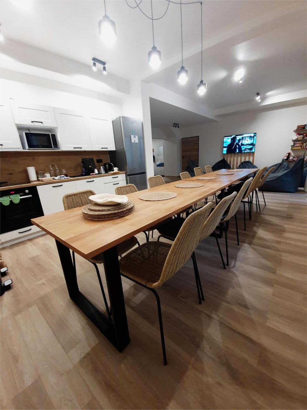 Willa. This villa features a sauna. Boasting a private entrance, this spacious villa also features 1 living room, 5 separate bedrooms and 5 bathrooms with a shower. Guests will find a stovetop, a refrigerator, a dishwasher and kitchenware in the well-equipped kitchen. The villa also comes with a barbecue. Featuring a terrace with garden views, this villa also features a washing machine and a flat-screen TV. The unit has 15 beds. Willa - 15 osobowy. Powierzchnia pokoju ok.: 200 mkw.