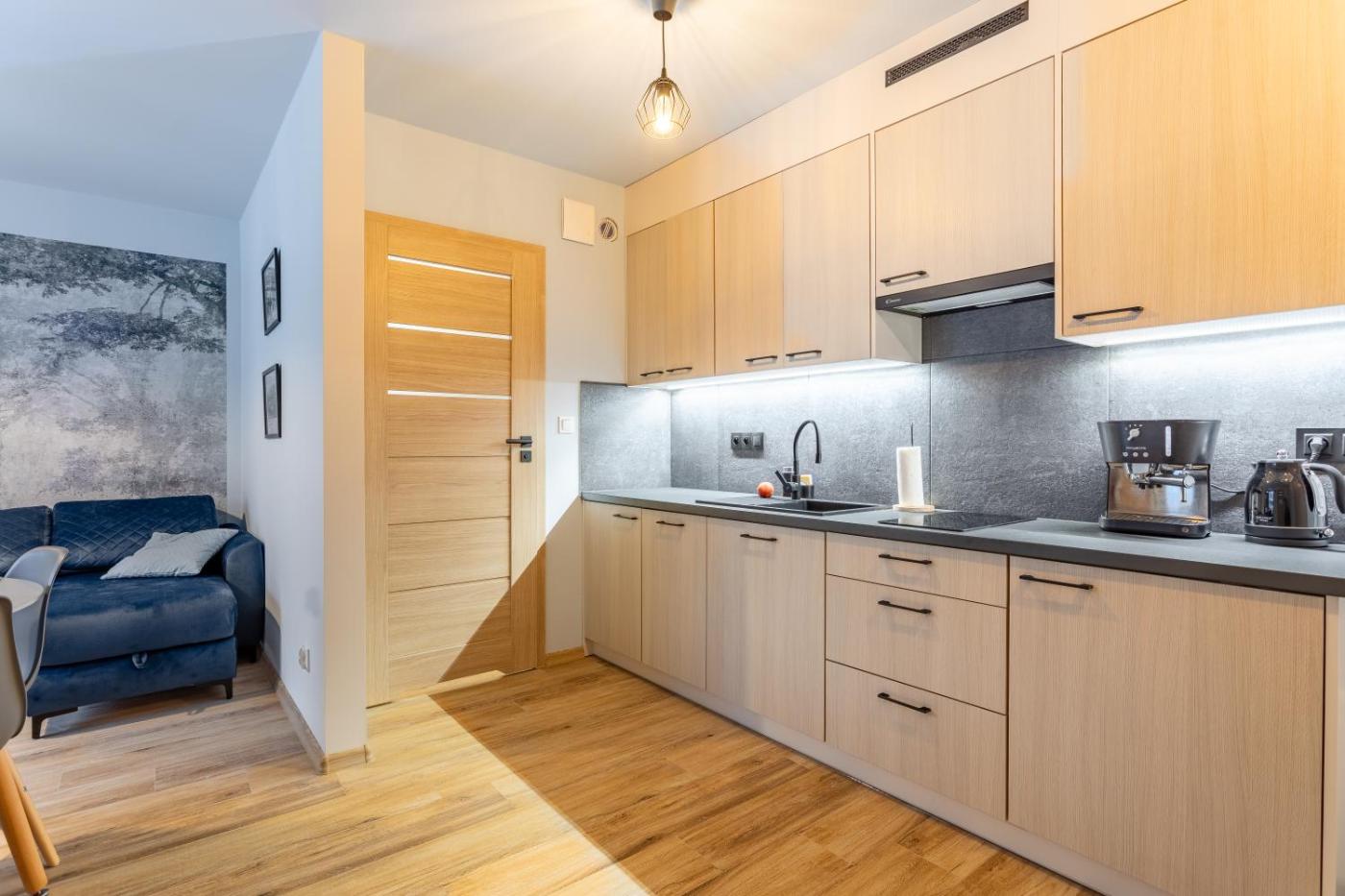 Apartament z 1 sypialnią. This apartment is comprised of 1 living room, 1 separate bedroom and 1 bathroom with a shower and a hairdryer. Meals can be prepared in the well-fitted kitchenette, which is fitted with a stovetop, a refrigerator, a dishwasher and kitchenware. A sofa, a flat-screen TV, a coffee machine and a balcony are featured in this apartment. The unit offers 2 beds. Apartament - 4 osobowy. Powierzchnia pokoju ok.: 30 mkw.